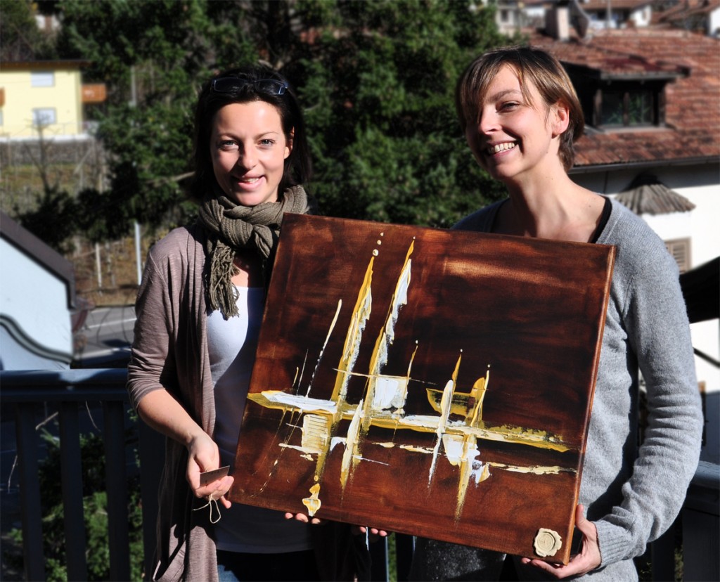 Die Künstlerin Sylvia Neulichedl (links im Bild) überreichte Irene Visentini anlässlich der aktuellen Sammlung unter anderem eines ihrer Werke, dessen Erlös der Organisation zugute kommen soll. Der nächste Verkaufspunkt wird vom 15. – 20. Mai in Bozen in der Galerie „l’angolo di Umberto Russo“ eröffnet.